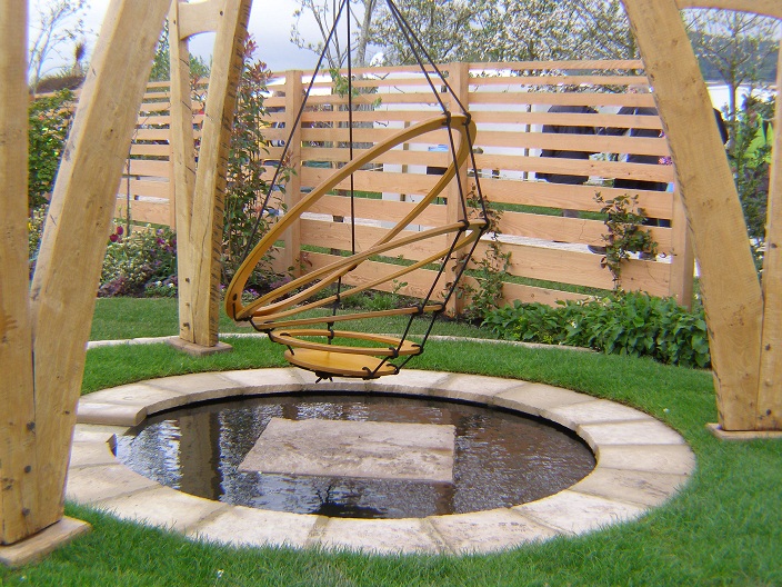 Ooooooohhhhh.... I want one of these. I so want one. This is the water feature of your dreams: a hot tub, in a big metal tank with a tube leading straight out to a wood-fired stove burning merrily in the corner. The surface of the water steams gently, you step up onto the rather lovely wooden platform and ease yourself into the heat of your very own outdoor bath.... mmmm.....